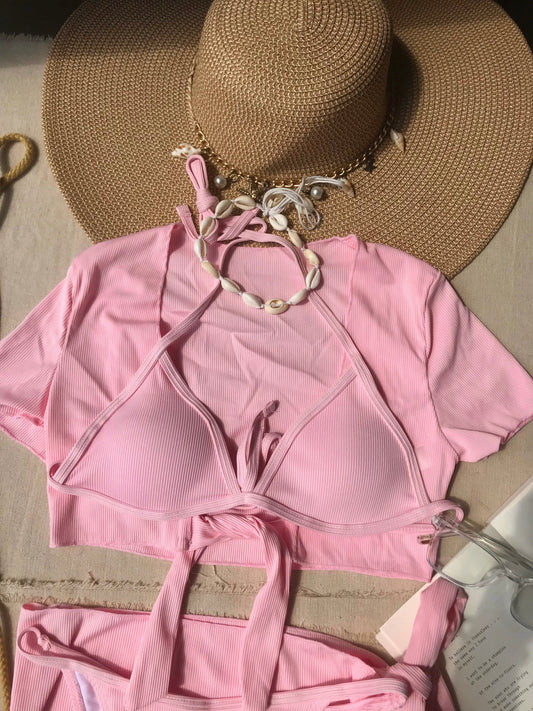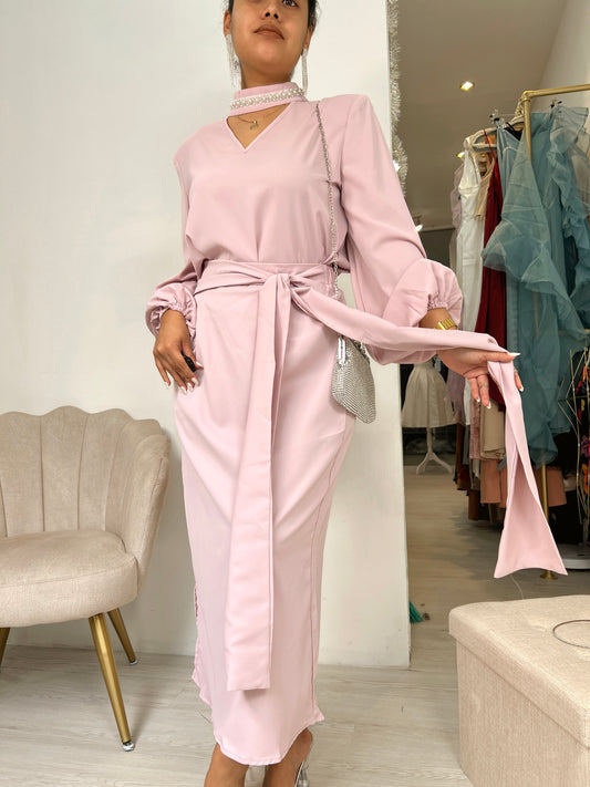 2pc Dusty Pink Modest Tie Waist Skirt Set