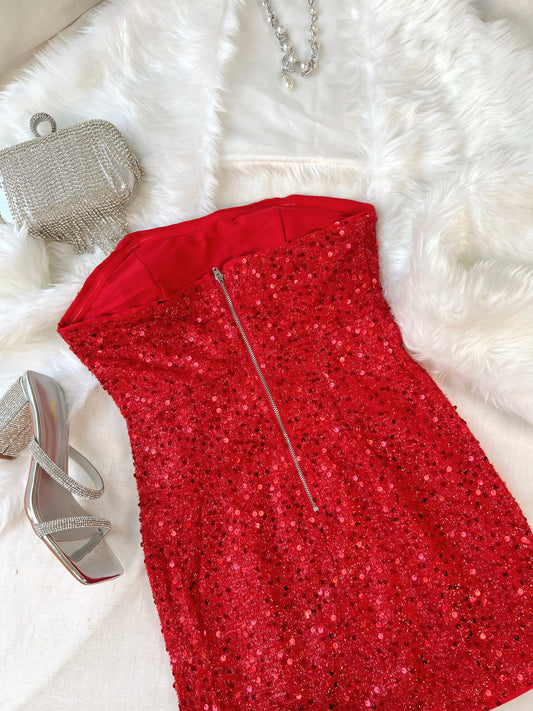Red Sequins Tube Mini Dress