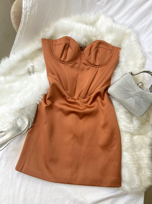 Rust Brown Corset Tube Dress