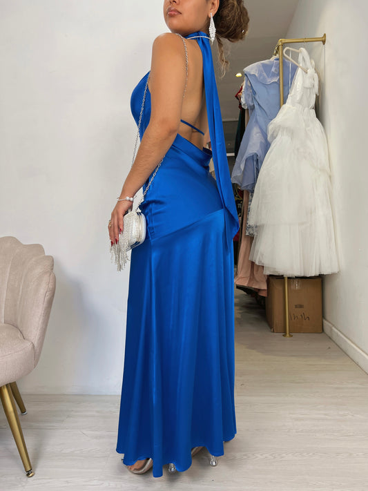 Royal Satin Halter Scarf Maxi Dress
