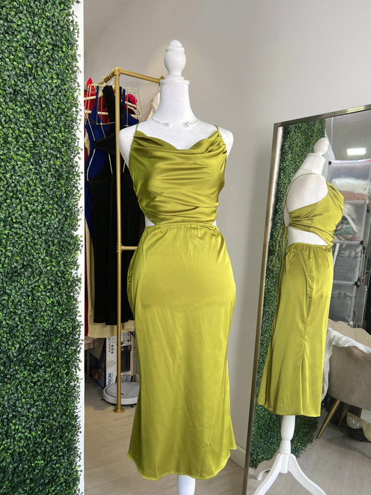 Lime Satin Laced Back Midi Dress