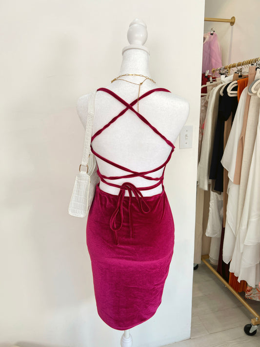Fuchsia Velvet Laced Mini Dress