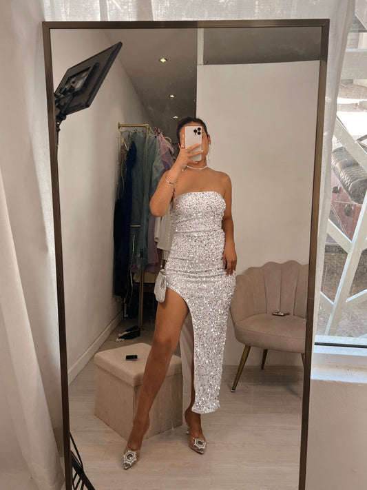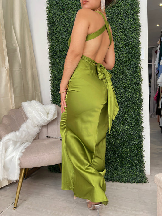 Sky Satin Wrap Button Maxi Dress + Mesh Shawl