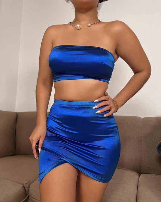 2pc Dusty Pink Modest Tie Waist Skirt Set