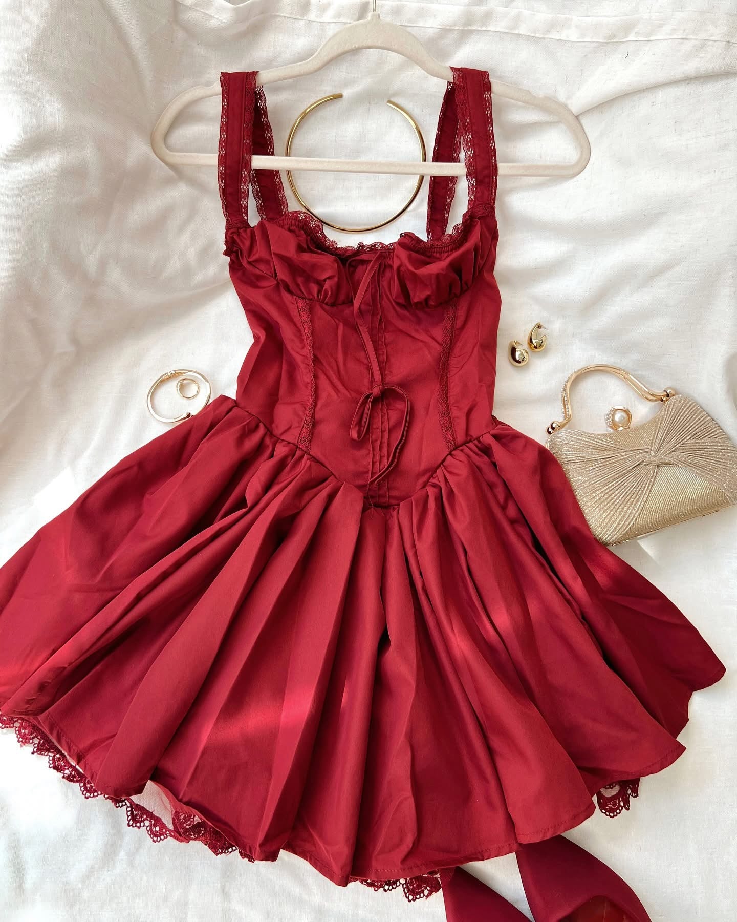 Maroon Tulle Bustier Mini Dress